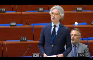 المقرر السيناتور فرانشيسكو فيردوتشي أثناء تقديم تقريره في مجلس أوروبا